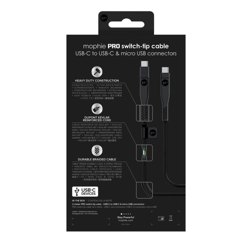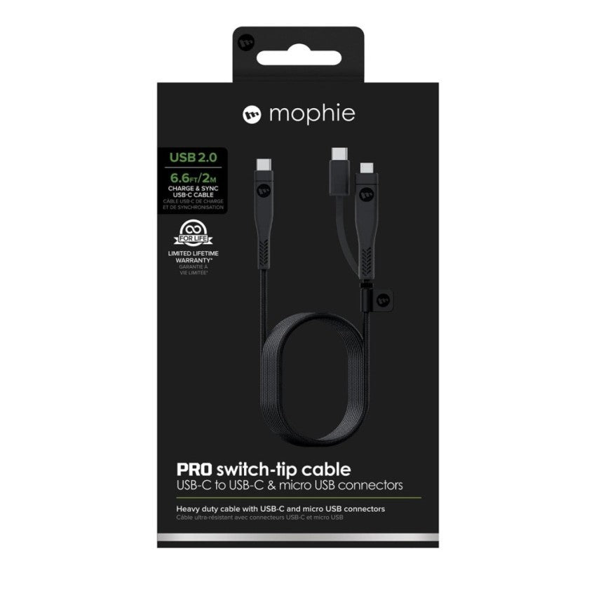 Mophie USB-C to USB-C Pro Switch-Tip-Cable (2 Meter), Black