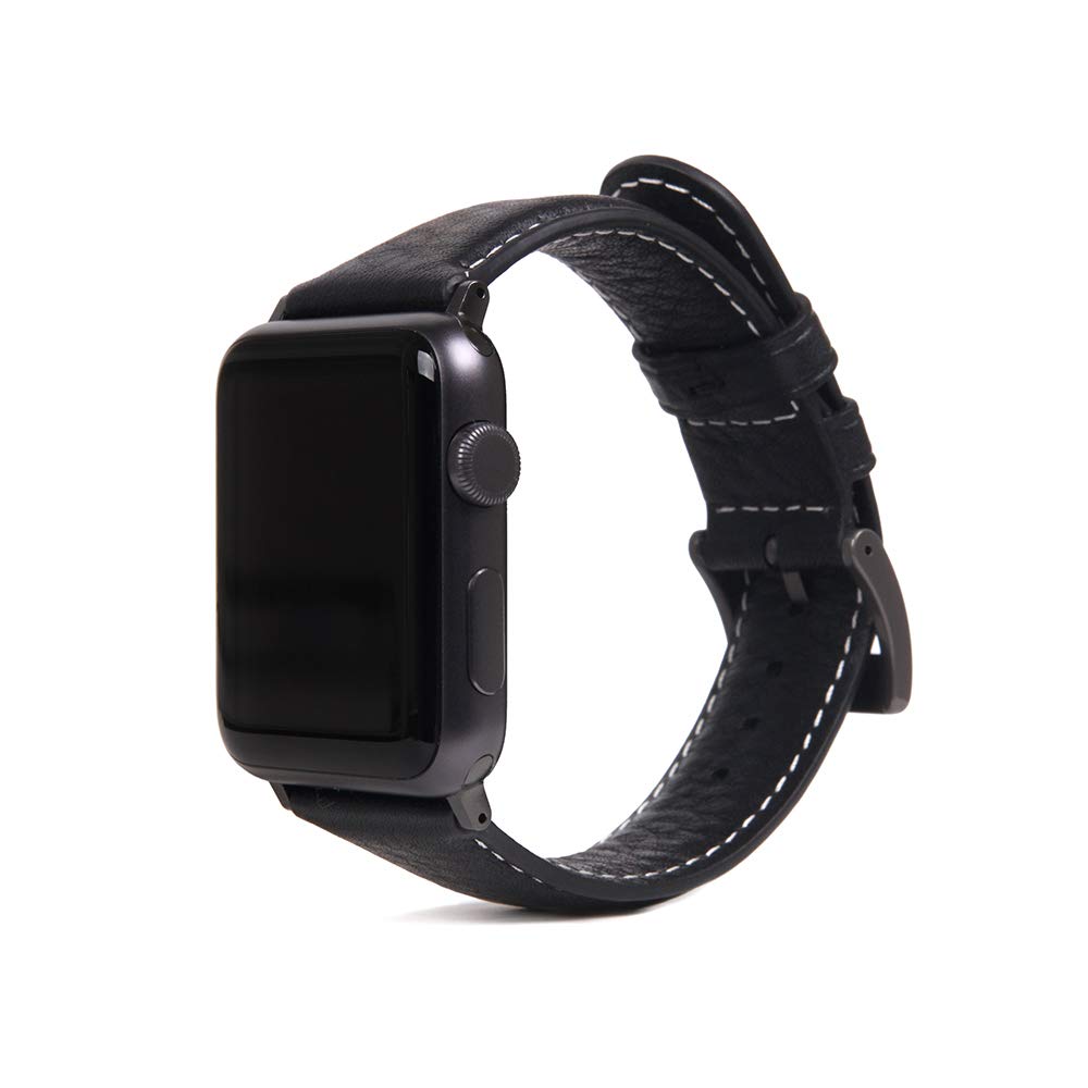 SLG Design Full Grain Leather Band for Apple Watch 49mm/45mm/44mm/42mm, Black